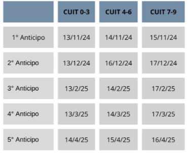 AFIP: NUEVOS VENCIMIENTOS DE ANTICIPOS DE GANANCIAS